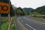 油木大橋のすぐ南に設置された警戒標識。もしかして更新されたのか?2010年版とは線形が違うぞ。