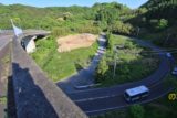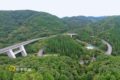 周辺は新第三紀備北層群という、地表近くでは強く風化して地すべりを起こしやすい地質であるため、路線計画においては切土を最小限にする工夫が必要だったそうだ。そんなわけで、周囲の地山を削らずに小谷川の源流付近の急斜面を克服する苦肉の策として、縦長の「の」の字を描くよう計画された。中の人がループ橋好きなわけではないのだ。