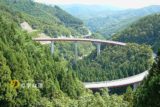 油木大橋のループ交差部。前後合わせて200mにのみ登坂車線が設けられている。