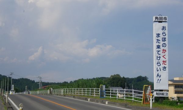 梁川のヨークベニマル前のセブンイレブンは、仙台方面下道ツーリングの休憩ポイント。近くにあるパン屋さんで売ってるプリンが激旨なので、当然今回も立ち寄ろうとしたのだが・・・空を仰ぐと、どうも雲行きがあやしい。通り雨がありそうなので、後ろ髪を引かれる思いで角田へ向かう。