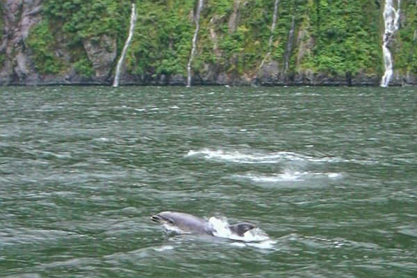 観光もほぼ終わり、桟橋に向かっていると海面に何かはねるものが。イルカだった。同室だったウェリントンの若者が聞いてくる。「日本人はアレを食うんか?」