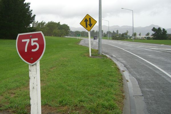 南島で唯一、高速道路っぽい道、State Highway 1のChristchurch Northern Motorway。もちろん通行料無料。いつの間にか高速道路っぽくなっていつの間にか住宅街になるので、それらしい写真を撮れる場所はほとんどない。