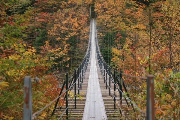 とりわけ、踏み板の幅が狭く、足元から川面が見える形式の吊橋はテンションが上がる。