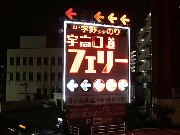 それにしても、「宇高うどんフェリー」とは、思い切りのよさがいい。国道なんかイラネ。ってことか。競合の瀬戸大橋(瀬戸中央道)も国道30号の自動車専用道だしな。