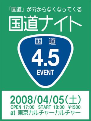 先週は鉄道ナイト2で大いに盛り上がった(まー、それは豊岡真澄ちゃんの芸能界ラストイベントとか向谷実氏来たる!とか、花があったからなー)らしいのだが、さて国道ナイトは如何に?